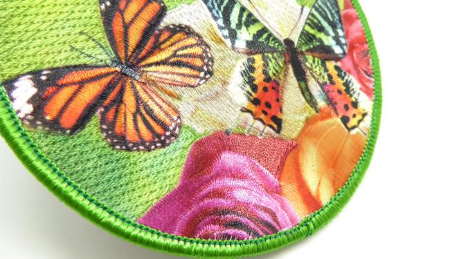 This method maintains the texture, feel and appearance of the Embroidered Badge but allows for gradients and photographic images to be produced within the design via a print.