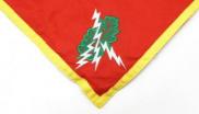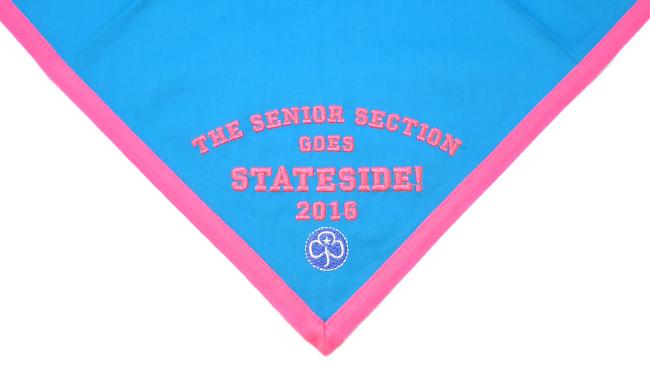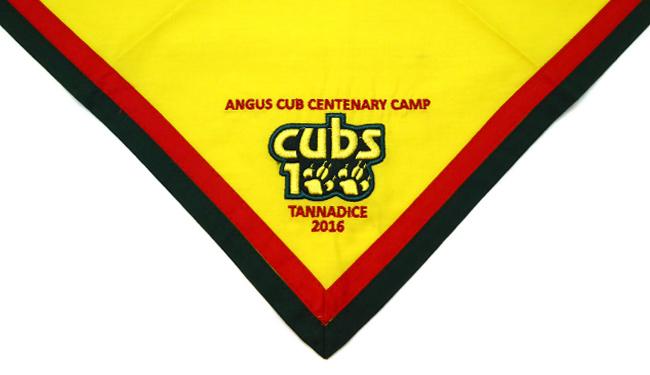 The embroidered logo is usually kept within around 100mm of the point of the necker so that the entire logo can be seen on the back when the neckers are worn.