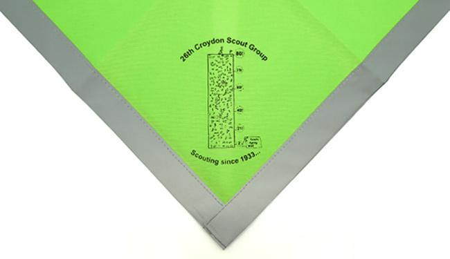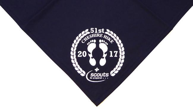 The logo is usually kept within around 100mm of the point of the necker so that the entire logo can be seen on the back when the neckers are worn.