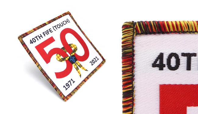 Woven Badges in standard shapes can be finished with a traditional overlocked edge. These borders are raised from the edge of the base twill and stylishly complete the look of the design.